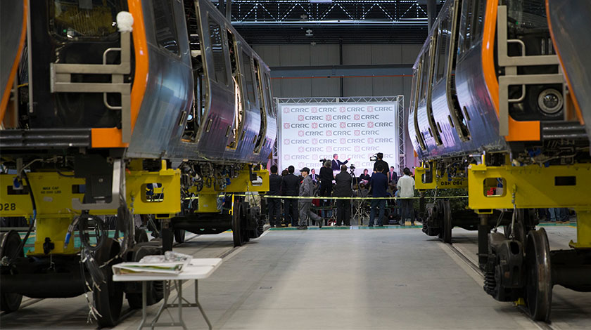 當地時間12月18日,馬薩諸塞州州長查理•貝克在美國中車麻省公司春田工廠首列車下線儀式上稱,這是波士頓公共交通系統辭舊迎新的『大日子』。當日,中國中車集團為波士頓地鐵生產的首列車在美國中車麻省公司春田工廠下線。馬薩諸塞州州長查理•貝克、中國駐紐約總領事黃屏、馬薩諸塞州春田市市長多梅尼克•薩諾、美國中車麻省公司總裁賈波等出席列車下線儀式。馬薩諸塞灣運輸局向中車訂購的152節橙線車輛和252節紅線車輛將逐步投入使用並替代兩條線現有的老舊車輛。(中新社圖片/ 廖攀 攝)