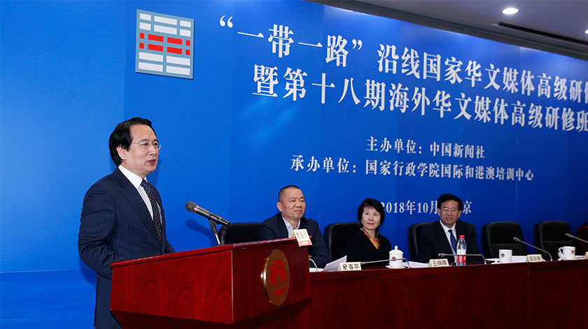 『一帶一路』沿線國家華文媒體高級研修班結業 10月18日,『一帶一路』沿線國家華文媒體高級研修班暨第十八期海外華文媒體高級研修班在北京結業。中央統戰部副部長譚天星出席結業式併發表講話。(中新社圖片/ 韓海丹 攝)