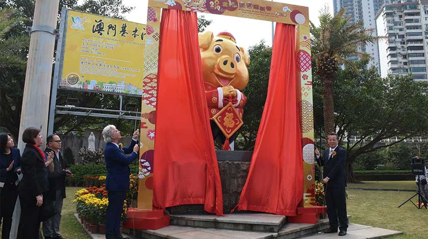 【本報訊】市政署一如民署以往在農曆新年前夕竪立新一年的生肖雕塑,今年全澳增至五隻的生肖金豬於昨日揭幕,期望為社會各界帶來好頭,讓市民福氣滿門。