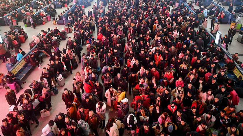 2月1日,旅客在福州火車站候車大廳候車。隨著新春佳節的臨近,福州火車迎來了客流高峰,候車大廳人山人海。(中新社圖片/ 呂明 攝)
