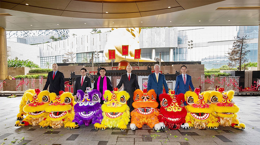 醒獅活動由美高梅中國控股有限公司首席執行官及執行董事簡博賢聯同一眾管理層成員主持慶典,並為八頭美獅點睛。群獅隨鑼鼓聲飛躍舞動,為賓客上演一場精彩絕倫的醒獅表演,更燃放爆竹為活動增添喜慶。活力十足的群獅隊伍其後穿梭酒店各處,與賓客一同迎春接福。