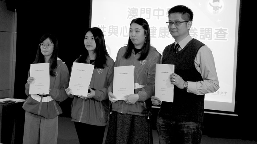 澳門中華學生聯合會與澳門大學政府與行政學系,早前進行一項「澳門中學生性與心理健康問卷調查」,昨公布有關調查結果,學聯理事長戴嘉萍稱,是次調查對象為澳門居民,並就讀於本澳全日制中學的學生,學聯邀請本澳四十二間中學,建議安排佔兩成半班級人數參與,只有九間中學同意,共發出一千三百九十六份問卷,收回有效問卷有一千一百零六份,當中男生五百零六名,女生六百名,分佔百分之四十五點八及五十四點二,男女比例較均衡。