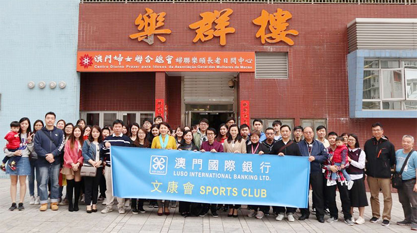 【特訊】澳門國際銀行文康會組織了“新春關愛送婦聯樂頤長者日間中心”活動,由該行梁月仙文康會會長、馮浪平資訊科技部主管、鄭英達營運部主管、何志明總行營業部行長、曾兆佳黑沙環分行行長、畢裕成保利達分行行長、羅潔如氹仔分行行長、黃則祺板樟堂分行行長、楊嘉慧台山分行行長,聯同該行五十多位員工,組成探訪團,在17日上午前往澳門婦女聯合總會樂頤長者日間中心進行探訪,受到澳門婦女聯合總會袁小菱副理事長、羅萍副理事長、婦聯樂頤長者日間中心何伊琳主任等熱情接待。