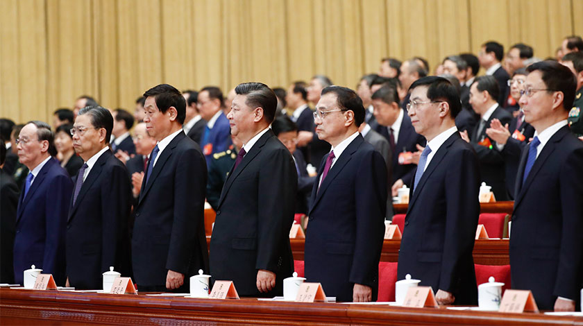 3月3日,中國人民政治協商會議第十三屆全國委員會第二次會議在北京人民大會堂開幕,習近平等黨和國家領導人出席大會。(中新社圖片/ 盛佳鵬 攝)
