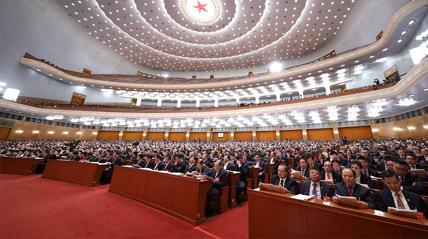 3月11日,全國政協十三屆二次會議在北京人民大會堂舉行第四次全體會議。(中新社圖片/ 盛佳鵬 攝)