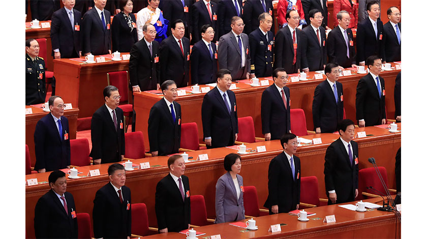 第十三屆全國人民代表大會第二次會議在圓滿完成各項議程後,3月15日在北京人民大會堂閉幕。習近平等黨和國家領導人出席閉幕會。(中新社圖片/ 杜洋 攝)