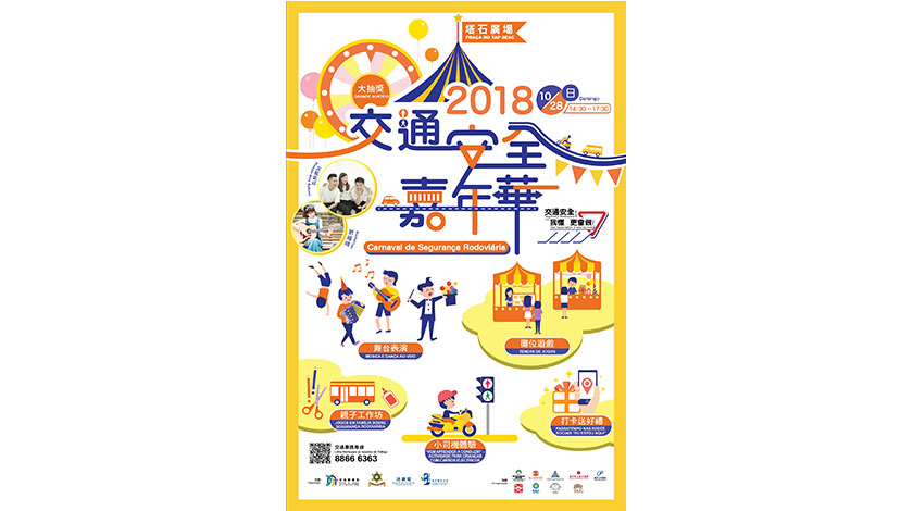 【特訊】「2018交通安全推廣」重頭活動-交通安全嘉年華,將於10月28日(周日)下午2時30分假塔石廣場舉行,現場設有攤位遊戲、親子工作坊、小司機體驗、打卡送好禮、幸運大抽獎及精彩的舞台表演,並邀請了澳門歌手灰藍氣球及劉蘊晴獻唱助慶。歡迎廣大市民到場參加,詳情可瀏覽交通事務局網頁www.dsat.gov.mo。