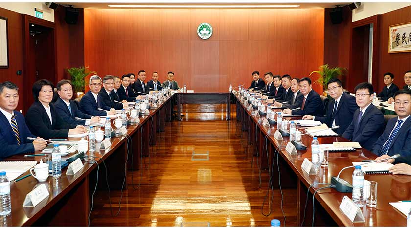 【特訊】「第二十二屆粵澳警務工作會晤」本月在澳門舉行,保安司司長黃少澤率領保安範疇官員領導與廣東省副省長、公安廳廳長李春生率領的廣東警方代表團出席,雙方總結了過去一年的治安狀況與警務合作情況,並重點商討國慶七十周年和澳門回歸祖國二十周年等重大活動的警務部署,同時就深化推進多個合作項目進行討論。