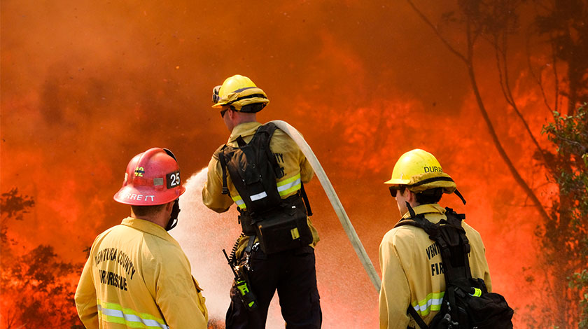 11月12日,在美國加利福尼亞州錫米瓦利,消防員在火場滅火。美國西部加利福尼亞州兩場山火11日持續肆虐,救援人員當天又找到6具遺體。新華社發(趙漢榮攝)