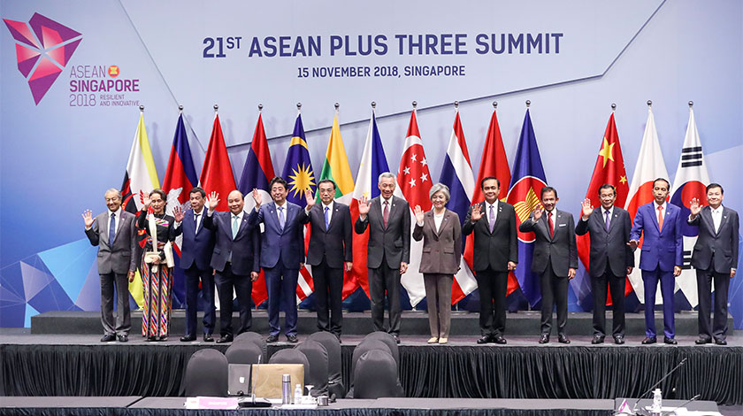當地時間11月15日上午,中國國務院總理李克強在新加坡會展中心出席第21次東盟與中日韓(10+3)領導人會議。(中新社圖片/ 劉震 攝)