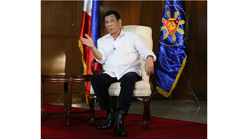 11月7日,菲律賓總統杜特爾特在馬尼拉接受新華社等中國媒體的聯合採訪。 新華社發(烏馬利攝)