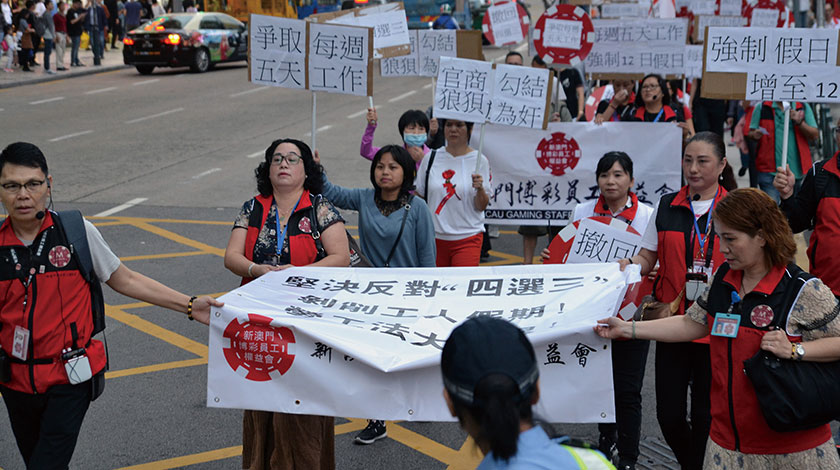 「澳門的法例保護不到我們,要博企承諾。究竟是政府大或博企大?」周銹芳也提出,就算博企堅守承諾,那些非博企員工怎樣?就要被迫接受「四選三」方案的剝削?她提醒,修訂《勞動關係法》不只關乎博企員工,全澳僱員均受到影響。