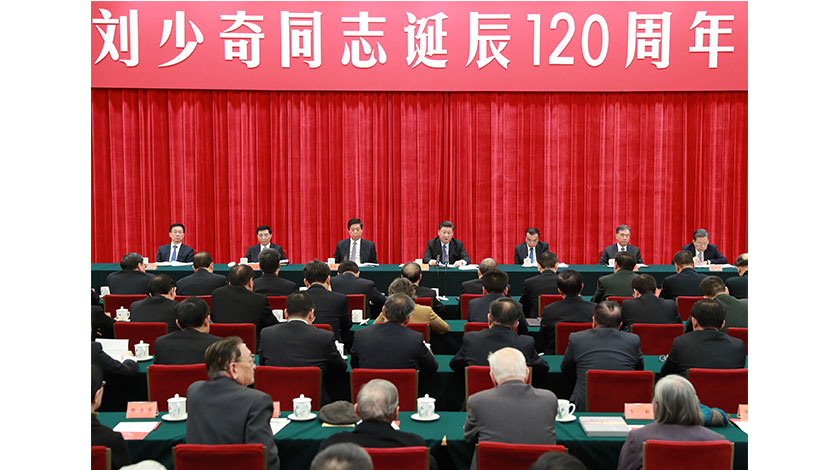 中共中央舉行紀念劉少奇同志誕辰120週年座談會 習近平發表重要講話11月23日,中共中央在北京人民大會堂舉行紀念劉少奇同志誕辰120週年座談會。中共中央總書記、國家主席、中央軍委主席習近平發表重要講話,中共中央政治局常委李克強、栗戰書、汪洋、王滬寧、趙樂際、韓正出席座談會。