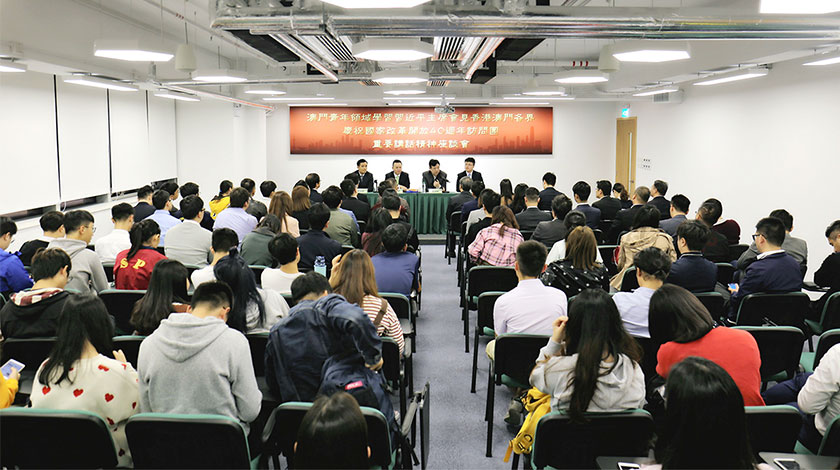 【特訊】“澳門青年領域學習習近平主席會見香港澳門各界慶祝國家改革開放40週年訪問團重要講話精神座談會”日前於澳門青年聯合會澳門日報大樓辦事處舉行。是次會議由澳門青聯會長莫志偉擔任主持人,並邀得澳門中聯辦副主任薛曉峰、新青協會長羅奕龍和澳門學聯會長李兆祖作為分享嘉賓。座談會旨在分享訪問團受國家主席習近平接見時的見聞,探討習主席為港澳未來提出的四點希望以及對青年的期望等多個方面。活動有近百名來自各界的青年代表參加。