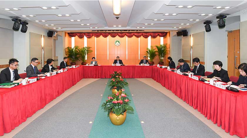 隨後,委員會副主席、保安司司長黃少澤,以及行政法務司司長陳海帆先後匯報了去年以來本澳維護國家安全工作方面的最新進展。保安司司長辦公室主任張玉英及司法警察局局長薛仲明兩名委員,亦分別匯報了2019年國家安全教育展的籌備情況,以及司法警察局為設立支援委員會運作的組織架構所開展的相關修法工作進度。