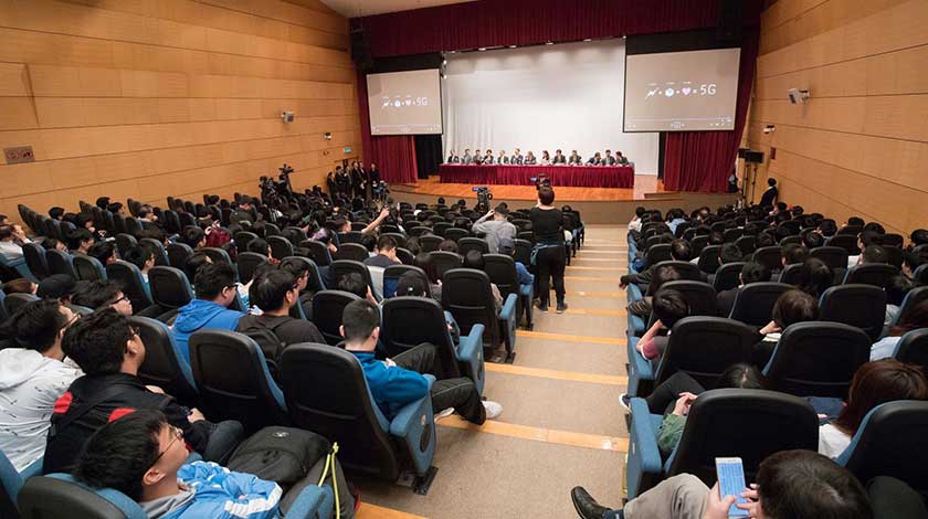 在答問環節中,理工學生均就本澳民生基建項目踴躍地以提問,關心環保、房屋政策、新科技建設和大型基建與澳門社會經濟多元化發展的關係。