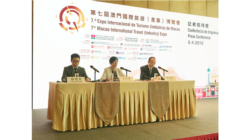 旅遊局聯同澳門旅行社協會昨假旅遊塔會展娛樂中心,舉行記者會(見圖)介紹今屆旅博會內容。旅遊局局長文綺華、副局長程衛東及澳門旅行社協會會長劉雅煌出席介紹會。