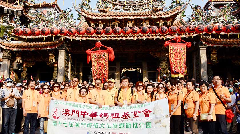 【特訊】澳門中華媽祖基金會澳門天后宮代表團於4月7日到台灣參與由台中大甲鎮瀾宮主辦的「2019年大甲媽祖觀光文化節暨大甲鎮瀾宮天上聖母己亥年遶境進香」活動。代表團一行30多人在團長陳明確及該會秘書長吳聯盟的帶領下,先到大甲瀾宮進行參拜,並在媽祖起駕後參與遶境。