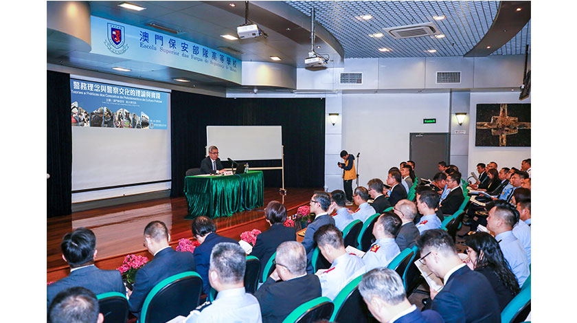 黃司長就警務理念與警察文化的概念以及內在聯繫作深入講解,剖析「主動警務」、「社區警務」和「公關警務」三個理念提出的原因、過程、實踐經驗和成果,鼓勵各級人員繼續穩步推進新型警務工作模式,持續深化警民關係,同時帶出健康的警察文化對警隊建設的重要性,樹立正確的價值觀,營造團隊精神,共同實現保安當局的警務理念,使警隊在執行嚴明紀律的同時,能完善剛柔並重的組織管理制度。
