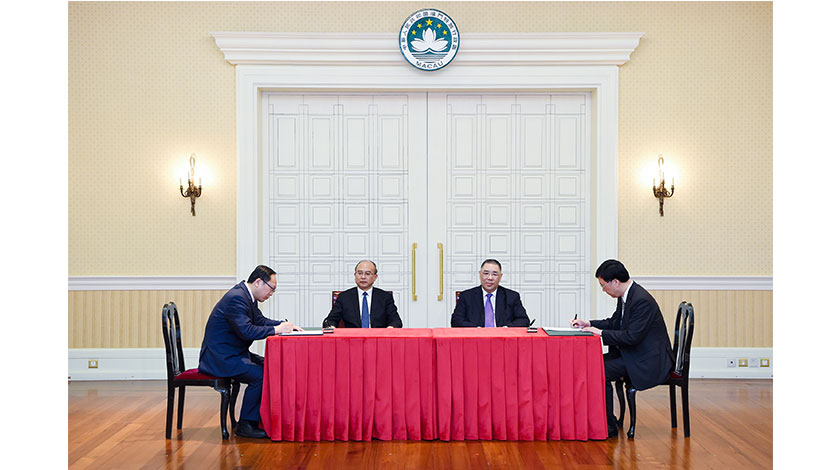 【特訊】行政長官崔世安及河北省省長許勤昨日下午在政府總部共同見證《河北雄安新區改革發展局與澳門金融管理局合作備忘錄》、《河北省商務廳與澳門貿易投資促進局共同推進冀澳經貿合作協議》和《河北省中醫藥管理局與澳門特別行政區政府衛生局中醫藥交流合作備忘錄》的簽署儀式,冀澳兩地就雄安新區建設、經貿及中醫藥等三方面加強交流合作。