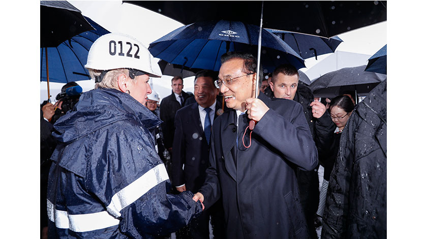 當地時間4月11日上午,中國國務院總理李克強在克羅地亞總理普連科維奇陪同下,來到克羅地亞南部的佩列沙茨半島,考察中國企業中標承建的佩列沙茨大橋項目。(中新社圖片/ 劉震 攝)