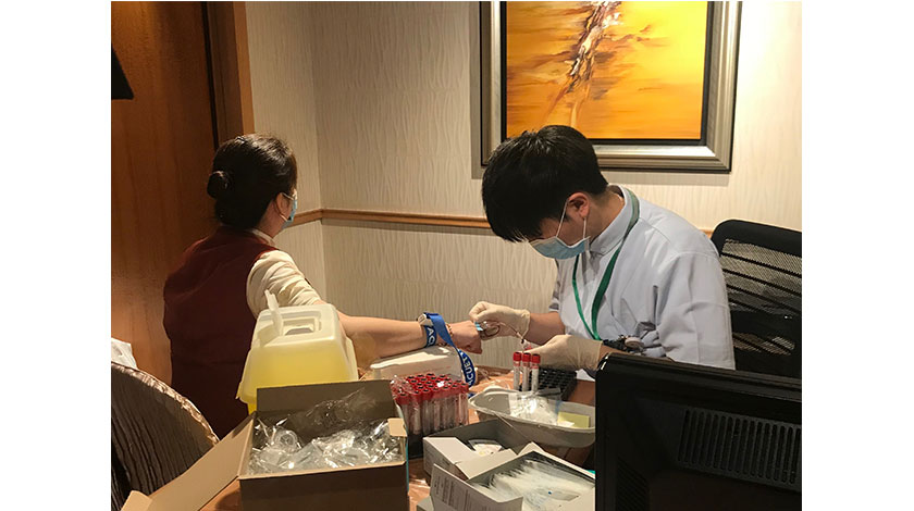 為使星際酒店員工中尚未檢測德麻疹免疫力的孕婦能儘快了解其免疫狀態,衛生局昨日派出護士到該酒店為有關孕婦抽取血樣本,今共有14名孕婦參加了驗血活動,衛生局將在4月15日再派人到該酒店為其他孕婦檢測抗體。