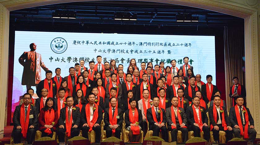 【特訊】中山大學澳門校友會日前假萬豪軒酒家舉行「慶祝中華人民共和國成立七十週年、澳門特別行政區成立廿週年、中山大學澳門校友會成立三十五週年暨中山大學澳門校友會第十屆會長及理監事會就職典禮晚會」,行政法務司司長陳海帆、中央人民政府駐澳門特別行政區聯絡辦公室秘書長王新東、該會永遠會長楊秀玲、新任榮譽會長蕭志偉、新任名譽會長關偉霖、梁玉華、法律顧問趙崇明大律師等出席,校友會新任負責人為會長霍志釗博士、理事長鄭嘉豪、監事長徐德明博士。