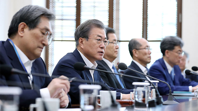 韓國總統文在寅4月15日稱,待朝方準備成熟,將不拘于形式和地點再次推進韓朝首腦會晤,進行更具體和務實的討論。(中新社圖片/ 青瓦台供圖 攝)