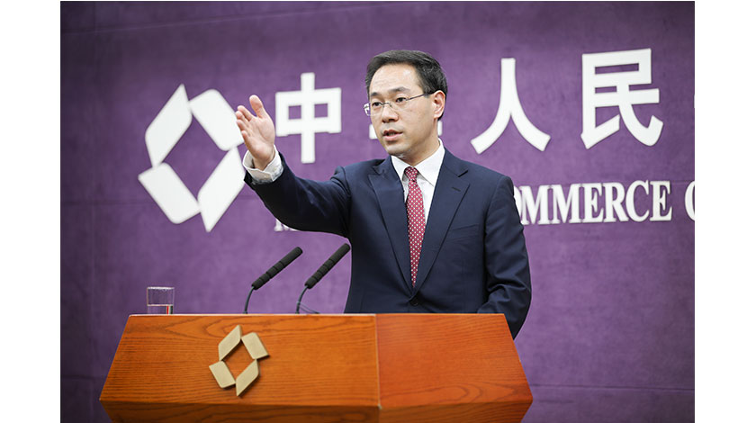 4月18日,中國商務部新聞發言人高峰在北京稱,中美經貿協議文本磋商不斷取得新的進展,但仍有不少工作尚待完成,雙方將繼續通過各種有效方式保持密切溝通。(中新社圖片/ 趙隽 攝)