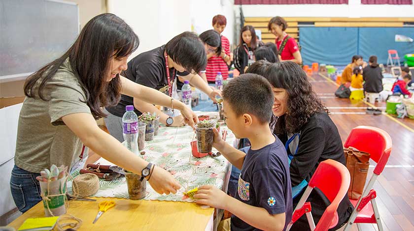禮堂上有小孩跑呀、跳呀,全身大躍動地進行熱身遊戲,然後認真地聆聽企鵝哥哥演繹有趣動人的小故事,場面溫馨愉快。幼小朋友亦玩得不亦樂乎,有的沉溺於波波池的懷抱,有的與家長協力於親子遊戲中完成任務。另一邊廂傳來輕鬆音樂,小朋友專注地投入小黃人筆筒的製作,家長大多被多肉小植物那肥嫩的外形所吸引,小心翼翼地把親自移植的小盆栽帶回家照顧。