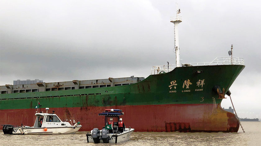 【特訊】海事及水務局與海關於4月19日晚上在往內港航道截停了撞毀護橋欄的貨船,並對其進行檢控和要求賠償。