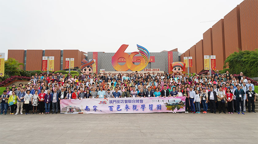 【特訊】日前,街坊總會組織理監事、部門主管、服務機構主任和地區坊會秘書約三百人赴廣西南寧舉行“2019年街坊工作集思會”,中聯辦社工部處長姜正宇、助理路艷輝擔任顧問,理事長吳小麗擔任團長。吳小麗期望與會者攜手落實今年的各項工作目標和任務,姜正宇則向與會者介紹百色起義的背景、過程、後續和意義。