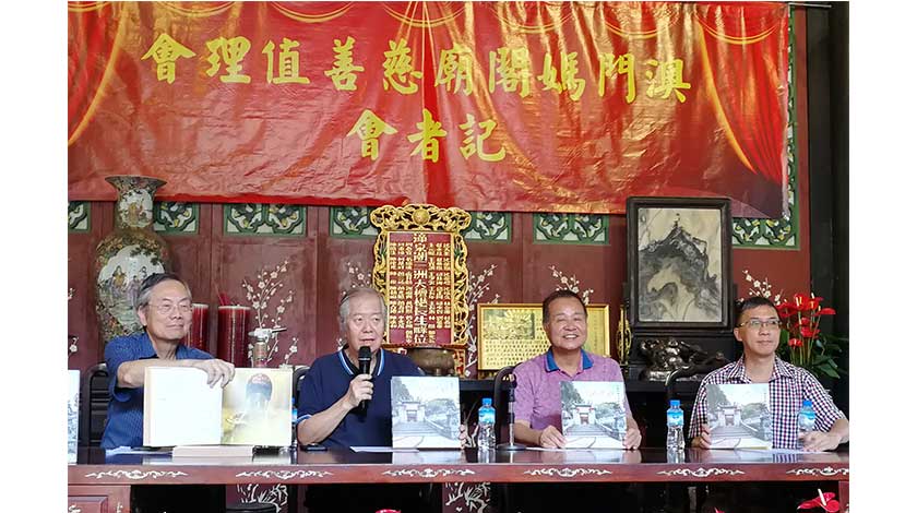 媽閣廟值理會主席柯萬乘、值理柯萬國、值理會風水法事顧問兼賀誕活動總策劃梁君豪、秘書長林家璇昨午列席記者會,詳細介紹出版《媽閣紫煙》廟誌情況。