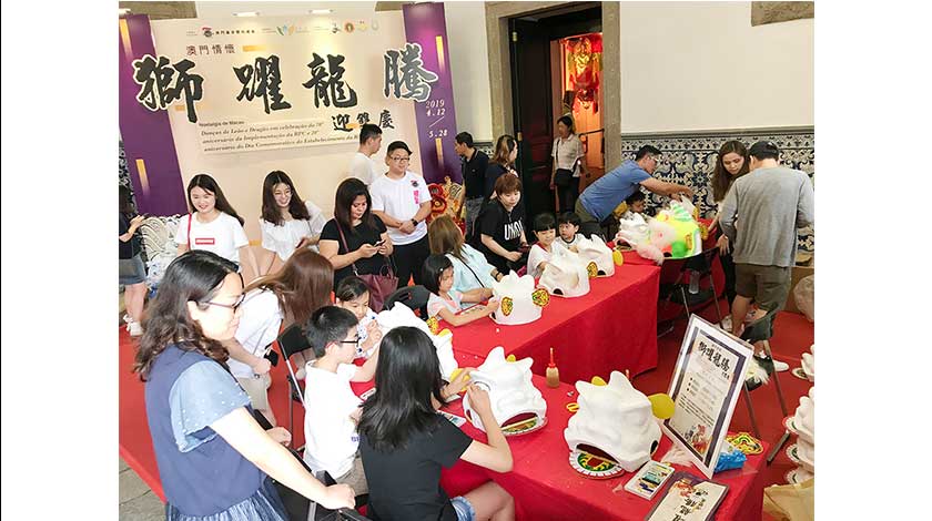 『澳門情懷─獅躍龍騰迎雙慶』以展示澳門龍獅文化器物、圖文視像形式為主體,於澳門市政署畫廊舉行,共分瑞獸堂、獅子樓、蟠龍閣及採青陣4個展廳。另外,為增強與市民遊客對醒獅文化互動接觸,展期內亦安排醒獅紮作彩繪「小藝坊」,公眾反應熱烈,餘下之場次為5月4、18日的早上十時三十分至十二時三十分。參與以先到先得的形式進行,並於活動當天即場登記報名,費用全免,彩繪模型尺寸約為十吋x十吋,參加者可自行帶走成品,期讓市民遊客增添別具紀念意義觀展之旅。