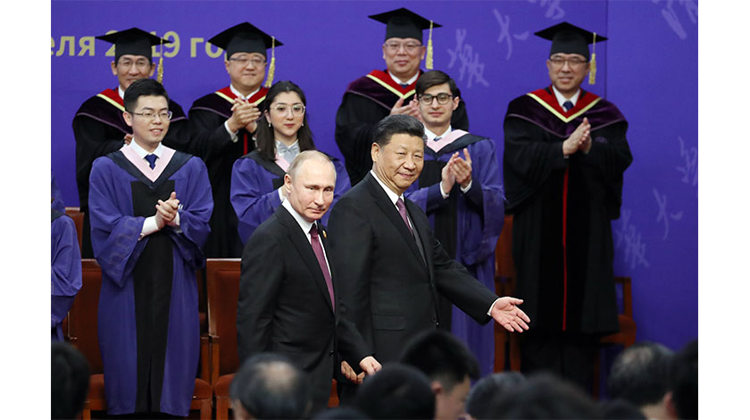 4月26日,中國國家主席習近平在北京友誼賓館出席清華大學向俄羅斯總統普京授予名譽博士學位儀式。(中新社圖片/毛建軍 攝)
