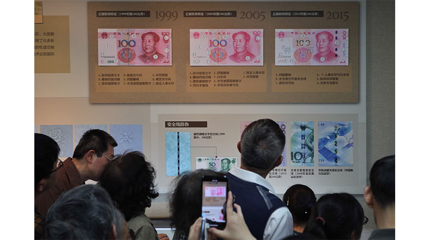 5月2日,小長假期間,正在上海圖書館舉行的人民幣發行70周年紀念展吸引了上海市民踴躍參觀。500余件展品集中展示了第一至五套人民幣的印製、發行成果,以及人民幣的發展傳承、精湛技藝和獨特魅力。(中新社圖片/ 張亨偉 攝)
