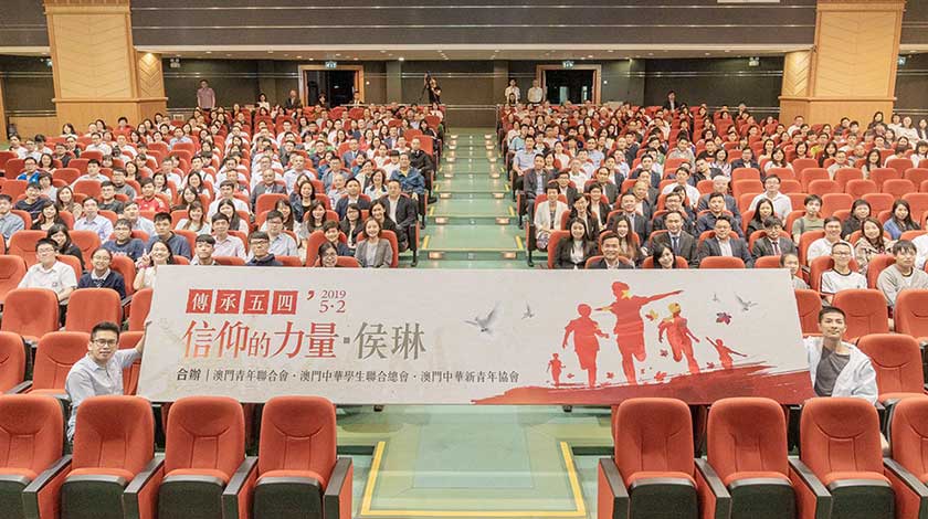 【特訊】由澳門青年聯合會、澳門中華學生聯合總會、澳門中華新青年協會聯合舉辦的“傳承五四•信仰的力量”專題講座於五月二日在澳門濠江中學何賢紀念堂舉行。是次講座邀得廣西區委黨校青年骨幹教師侯琳主講,共吸引五百多名本澳青年學生參與;冀讓青年學生認識“五四精神”的實質,了解信仰的力量,把握新時代下青年的機遇。