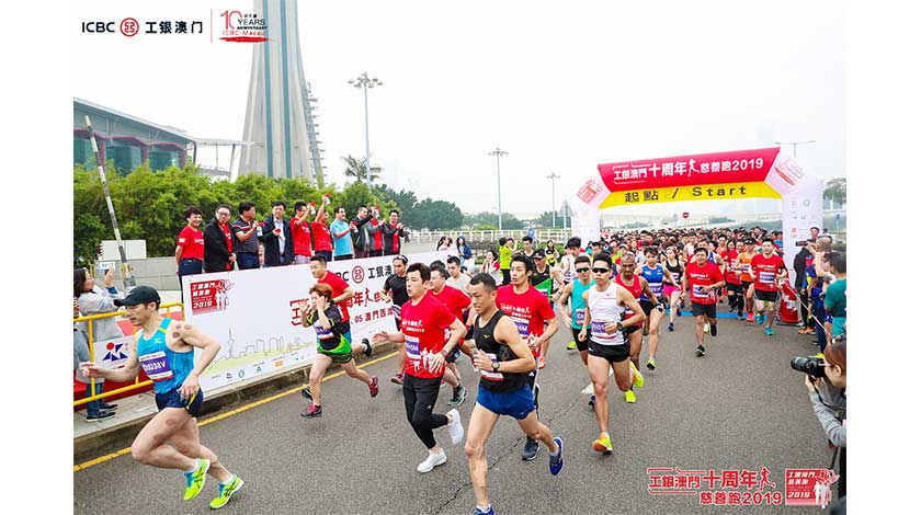 【特訊】由工銀澳門主辦、澳門體育局和澳門田徑總會協辦的「工銀澳門十周年慈善跑2019」,5月5日早上在澳門西灣湖廣場熱鬧開跑,經過近兩個月的報名,賽事的三個組別:9公里躍動勁跑組和6.5公里激發潛能組、以及2.5公里的親子童樂組,一共吸引超過1500名跑手報名,除了個人參賽外,是次「工銀澳門十周年慈善跑2019」還得到本地多間企業團體以及政府部門支持,以隊伍形式報名作賽,最多的隊伍更組織50人參與賽事。本次比賽所有的收益,將會全數捐贈給澳門婦女聯合總會之婦女兒童關愛基金以及澳門扶康會作慈善用途,跑手們身體力行為慈善出一分力。