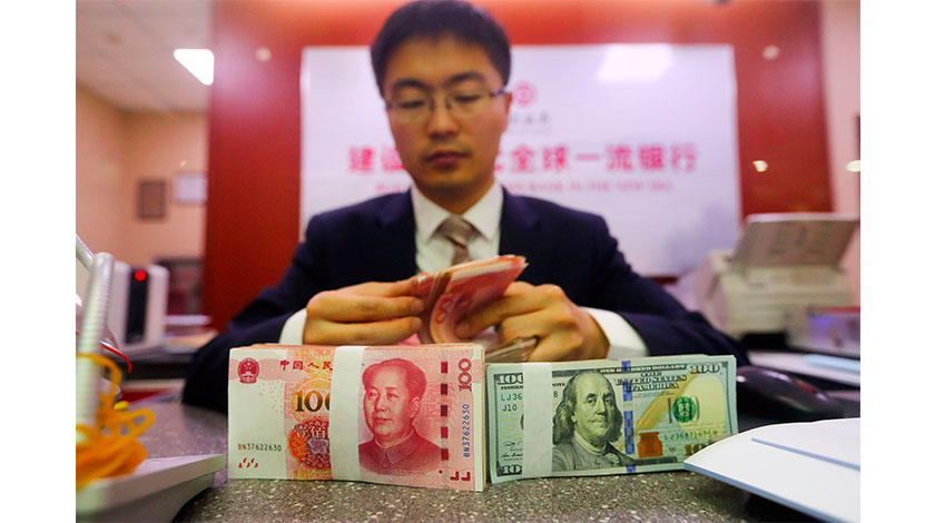 5月7日,中國外匯交易中心當日公佈人民幣對美元匯率中間價為6.7614,較前一交易日下調270個基點,上一次人民幣對美元匯率中間價落在6.76區間是在今年2月19日。近三個月內,人民幣對美元匯率中間價再次跌落至6.76區間。(中新社圖片/ 張雲 攝)