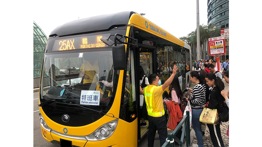 關注到「五‧一黃金週」期間大批旅客訪澳,交通事務局在假期前已聯同相關部門及公司舉行會議,商討應對安排,包括要求各營運公司留意客流情況適時增加營運車輛數量及發車班次,做好各項優化候車環境工作、增加人手引導乘客上車及理順排隊秩序等,並設立通報機制,應對各種突發事件。在公共巴士服務方面,除開通3BX及51X單向路線巴士,亦調整部份巴士站安排;加密18條路線巴士之班次及安排21A部分班次以大巴行駛;巴士公司在關閘口岸附近設置諮詢站向乘客提供巴士服務資訊,同時安排拖車於重要路段處理車輛故障的情況;在繁忙時段,巴士公司也實施了預先制訂的亞馬喇前地緊急應變方案,以疏導交通擠塞情況,亦抽調車輛(包括18米大巴)以點對點方式疏導亞馬喇前地的乘客前往關閘。