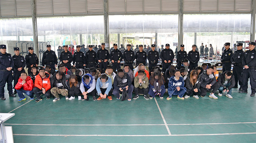 5月10日,廣州警方通報稱,警方近期搗毀一個特大『套路貸』涉黑團夥,抓獲多名犯罪嫌疑人。警方偵破該團夥涉嫌『套路貸』詐騙、尋釁滋事、故意傷害、非法拘禁、敲詐勒索等涉黑惡案件多宗,查封、凍結及扣押涉案總資產1.058億元人民幣。(中新社圖片/ 廣州警方 攝)
