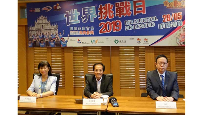 【特訊】為進一步推廣“終身體育”的健康生活模式,由體育局和市政署合辦,衛生局協辦的“2019世界挑戰日”活動,將於5月29日(星期三)舉行。於每年5月份舉行的“世界挑戰日”,是國際群眾體育協會和亞太群眾體育協會提倡的其中一項世界性活動,本澳自2001年起響應該項活動,組織全澳各界參與。活動是按參賽城市的總人口數來分組,由國際群眾體育協會以抽籤形式,決定對賽的城市,在活動當日,連續進行了15分鐘任何形式體育活動的人數,佔該城市總人口比率較高者為勝方。今年,與澳門對賽的城市是以色列耶路撒冷,人口約為85萬人。