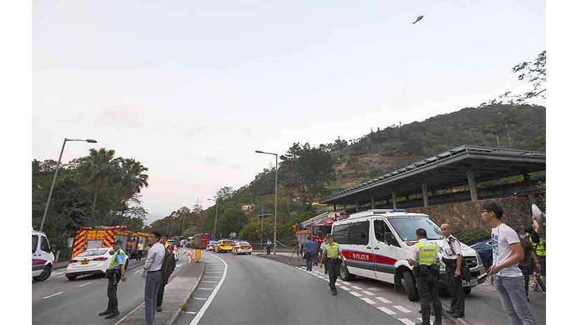 【中新社香港5月19日電】香港警務處19日晚在其社交網頁發佈消息稱,較早前因直升機墜毀意外而封閉的林錦公路來回方向近嘉道理農場的行車線現已解封。根據該消息的配圖顯示,目前直升機殘骸已被消防人員噴水熄滅。