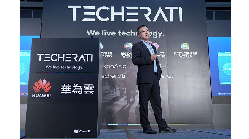 5月22日,香港亞太雲端科技博覽在香港會展中心開幕。包括谷歌雲、阿里雲、騰訊雲等超過280家參展商聚集一堂,展示最新雲端運算科技。除了展覽以外,本次博覽會還舉辦一系列有關雲端科技等會議、講座、社交舞台和新品發佈等活動。圖為華為雲副總裁何非在展覽主會議廳發表演講,介紹華為雲的智能化發展趨勢。(中新社圖片/張煒 攝)