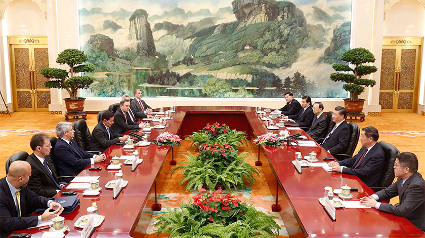 5月24日,中國國家主席習近平在北京人民大會堂會見巴西副總統莫朗。(中新社圖片/盛佳鵬 攝)
