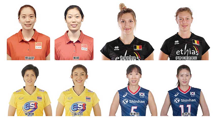 八名候選球員分別為:中國隊的朱婷及鄭益昕、韓國隊的李孝熙(Lee Hyo Hee)及金秀智(Kim Su Ji)、泰國隊的保琳婕(Pleumjit Thinkaow )及露莎拉(Nootsara Tomkom)以及比利時隊的格羅貝爾納(Kaja Grobelna)和伊爾卡雲迪韋花(Ilka Van de Vyver)。