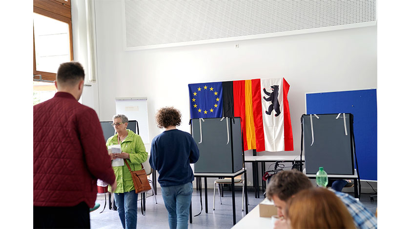 當地時間5月26日上午8時,歐洲議會選舉投票正式在德國開啟。截至當晚18時,符合條件的德國6400多萬選民將投票選出下屆歐洲議會751個議席中的96席。作為歐盟『最大票倉』,本次歐洲議會選舉在德國的選情備受關注。圖為26日上午,選民在柏林市內的一處投票站投票。(中新社圖片/ 彭大偉 攝)