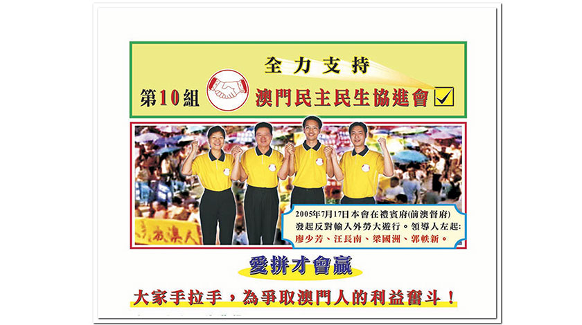 梁在○五年特區第二屆立法會選舉時,為「澳門民主民生協進會」組別的第二候選人,該組以回歸前曾做過一屆議員的汪長南為首,政綱主打反對輸入外勞、放寬家庭團聚。他們最終以四千三百五十八票落敗,未獲任何議席。汪過去數屆都循專業界擔任特首選委,今屆則未有躋身候選名單內。