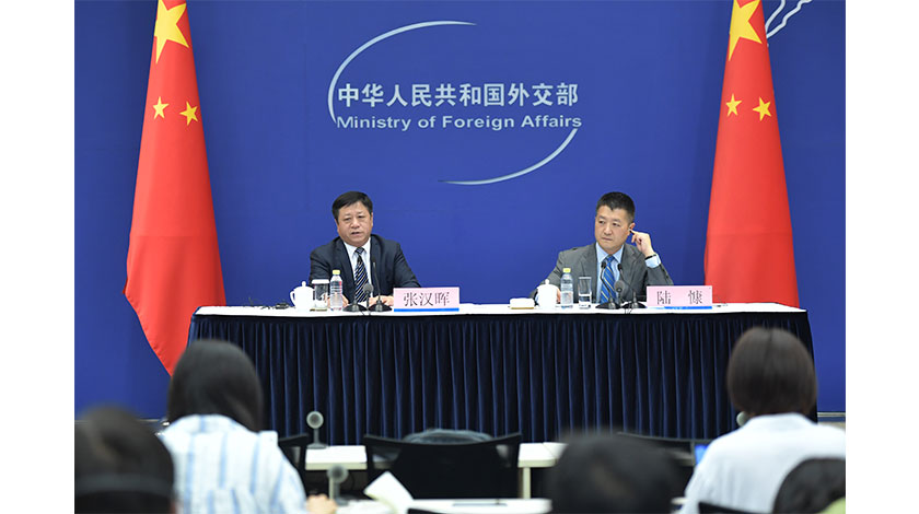 6月10日,中國外交部舉行中外媒體吹風會。外交部副部長張漢暉介紹國家主席習近平即將對吉爾吉斯斯坦、塔吉克斯坦進行國事訪問並出席上海合作組織成員國元首理事會第十九次會議、亞洲相互協作與信任措施會議第五次峰會有關情況,並回答記者提問。(中新社圖片/崔楠 攝)