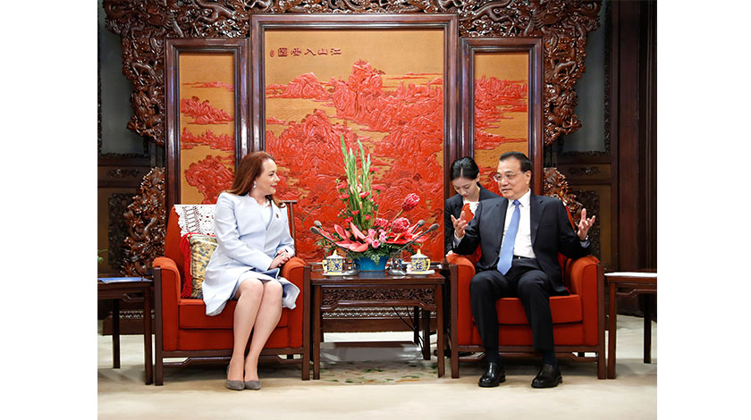 6月17日,中國國務院總理李克強在北京中南海紫光閣會見第73屆聯合國大會主席埃斯皮諾薩。(中新社圖片/劉震 攝)